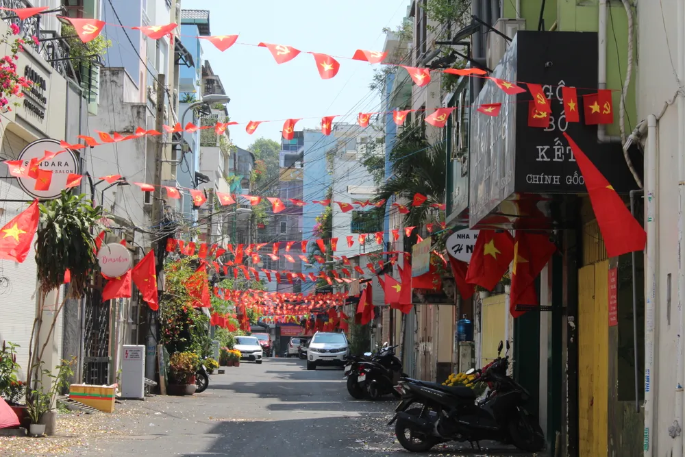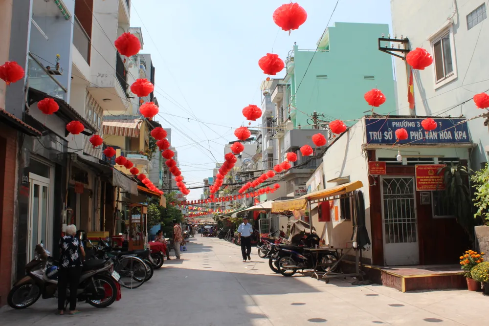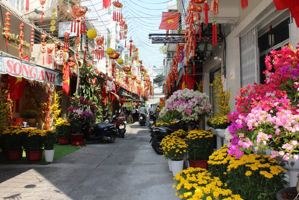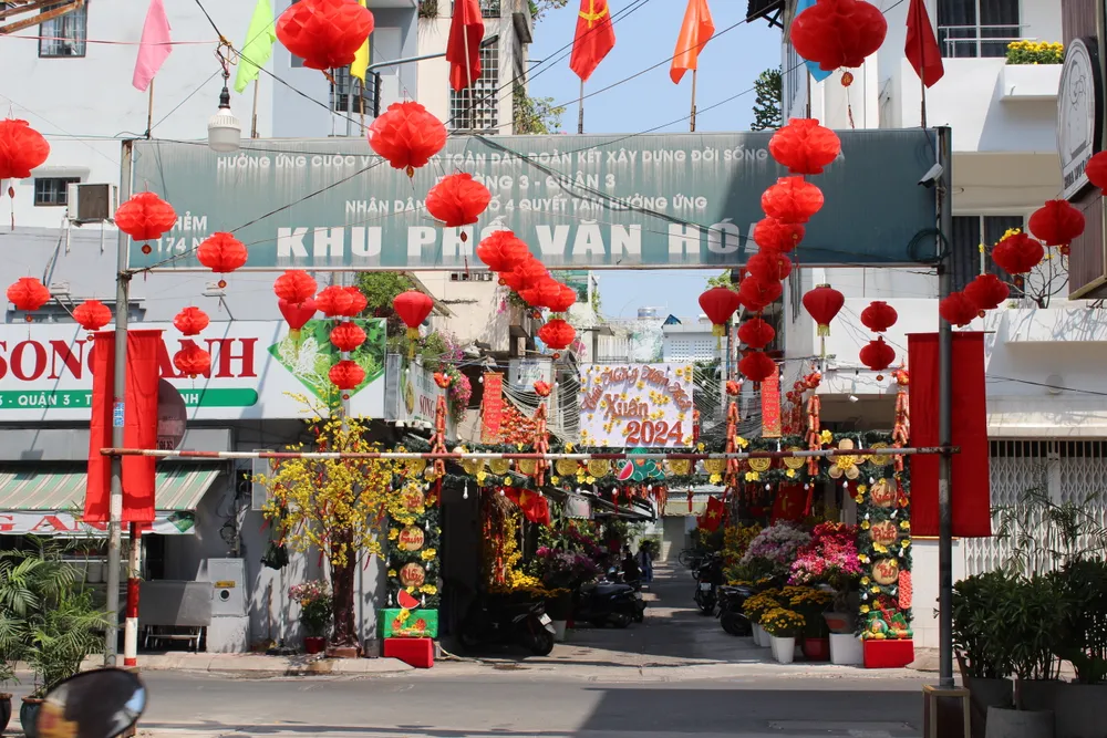 Các hẻm ở phường 3, quận 3 được trang hoàng rực rỡ. Ảnh: TIỂU TÂN