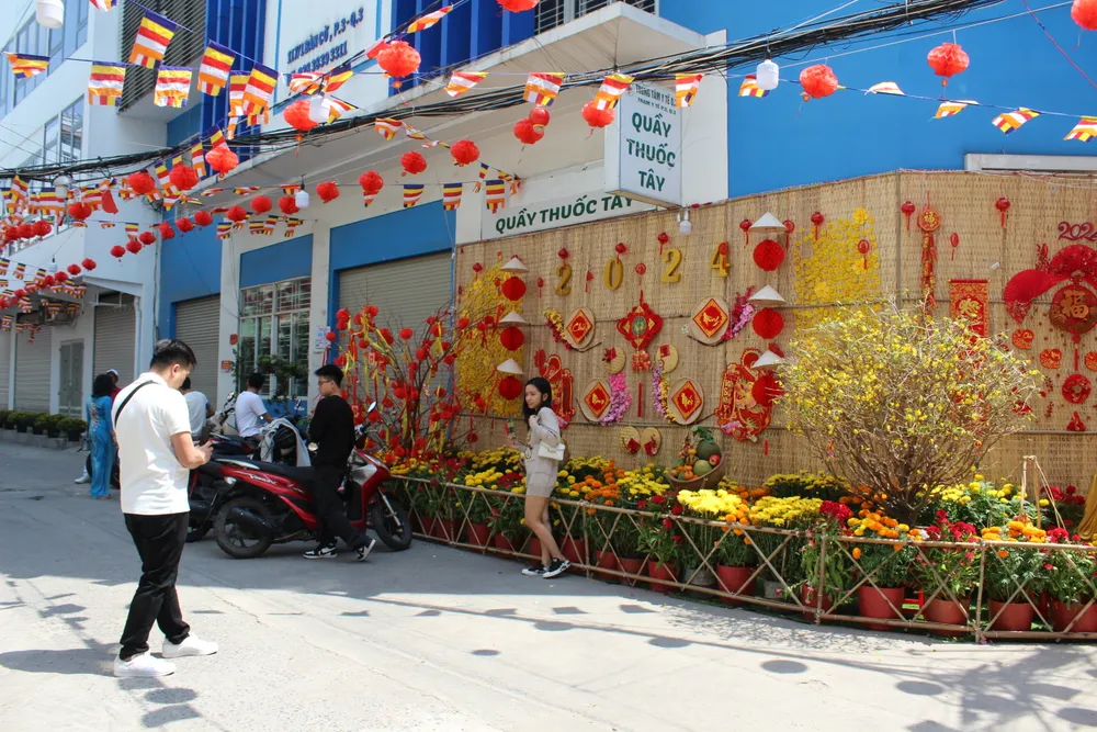 Các đường phố, hẻm nhỏ ở các khu phố cũng thay áo mới, được trang hoàng rực rỡ là điểm chụp ảnh đầu năm. Ngoài ra, các quán cà phê được decor trang trí theo phong vị tết cũng thu hút người trẻ đến vui chơi, chụp ảnh xuân.