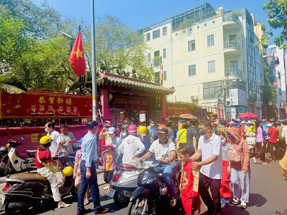 Cũng trong ngày đầu xuân Giáp Thìn 2024, đông đảo người dân TPHCM nô nức đổ về các địa điểm di tích, đền chùa, hội quán để lễ chùa như: Chùa Ngọc Hoàng (quận 1), chùa Vĩnh Nghiêm, chùa Xá Lợi (quận 3); Việt Nam Quốc Tự (quận 10), Lăng Tả quân Lê Văn Duyệt - Lăng Ông - Bà Chiểu (quận Bình Thạnh); Nam Thiên Nhất Trụ Tự (TP Thủ Đức); chùa Giác Lâm (quận Tân Bình)…