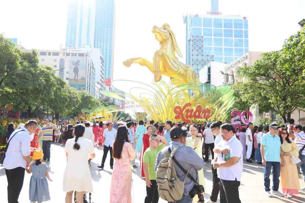 Ở khu vực trung tâm, Đường hoa Nguyễn Huệ tiếp tục là điểm đến hấp dẫn. Dòng người đổ về tham quan, chụp ảnh khiến nhiều thời điểm khu vực này đông kín. Các tiểu cảnh được đầu tư công phu, mang đậm sắc xuân thu hút đông đảo du khách trong và ngoài nước đến chụp ảnh.