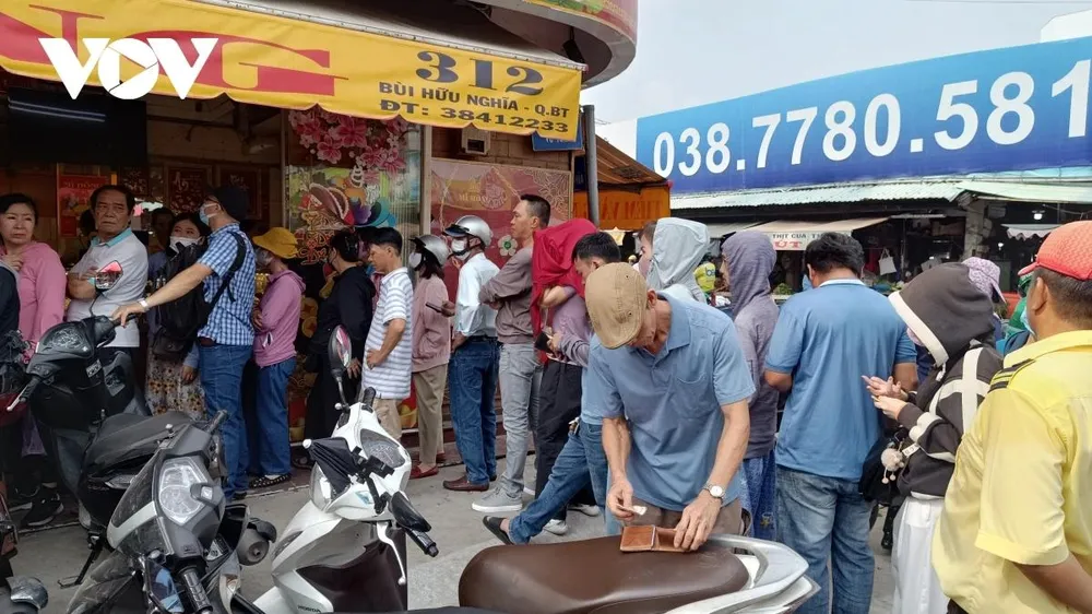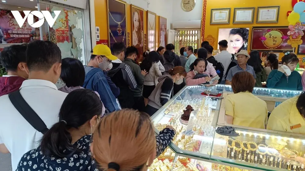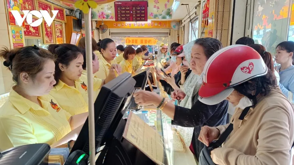 Đặc biệt, tại hai tiệm vàng Mi Hồng trên đường Bùi Hữu Nghĩa (quận Bình Thạnh), có khoảng 30 khách mua xếp hàng từ phía ngoài đường tới quầy giao dịch bên trong để chờ đến lượt mua vàng. Điều này khiến các nhân viên tiệm vàng phải điều phối, sắp xếp để tránh ùn tắc đường phía ngoài cửa tiệm.