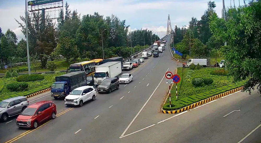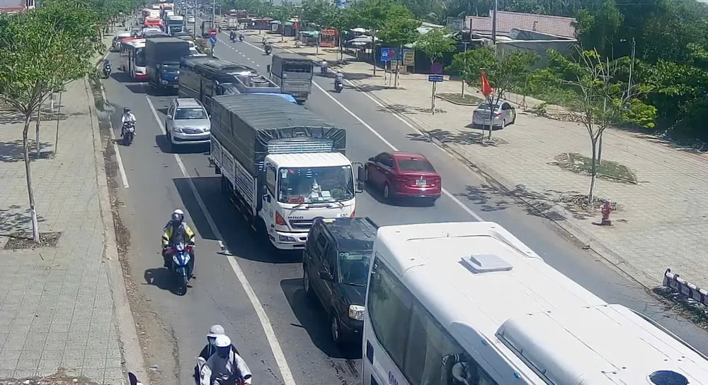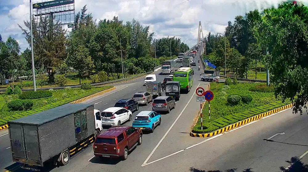 Khá đông phương tiện di chuyển trên quốc lộ 1, trong đó hướng miền Tây về TPHCM rất đông xe