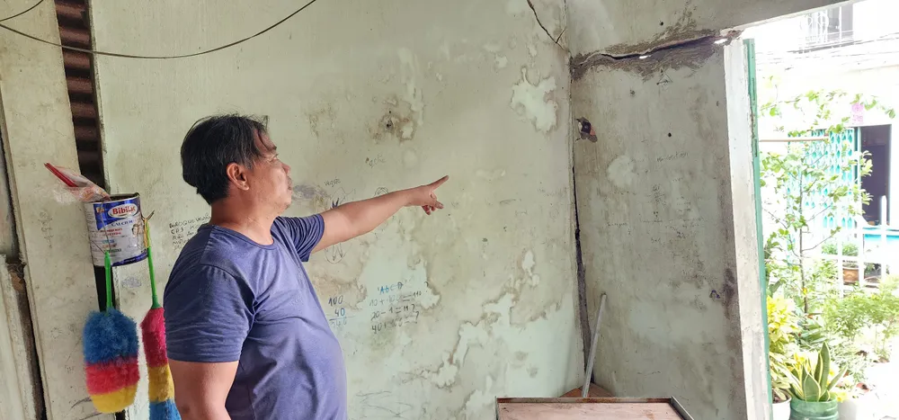 Hiện tượng sụt lún mỗi ngày một nghiêm trọng khiến người dân thấp thỏm , lo âu nhưng chẳng biết phải làm sao, chỉ biết mua xà bần, sắt gia cố tạm.