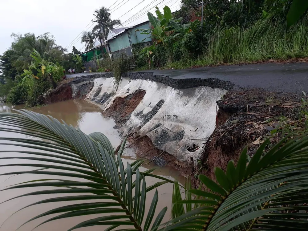 Một số tuyến đường ven sông ở Tiền Giang bị sạt xuống sông