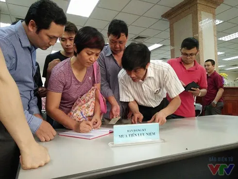 (ĐTTCO)-Chỉ trong vòng vài giờ mở bán, Ngân hàng Nhà nước chi nhánh 45 Lý Thường Kiệt đã tiếp hàng trăm người dân đến mua tờ tiền lưu niệm 100 đồng.