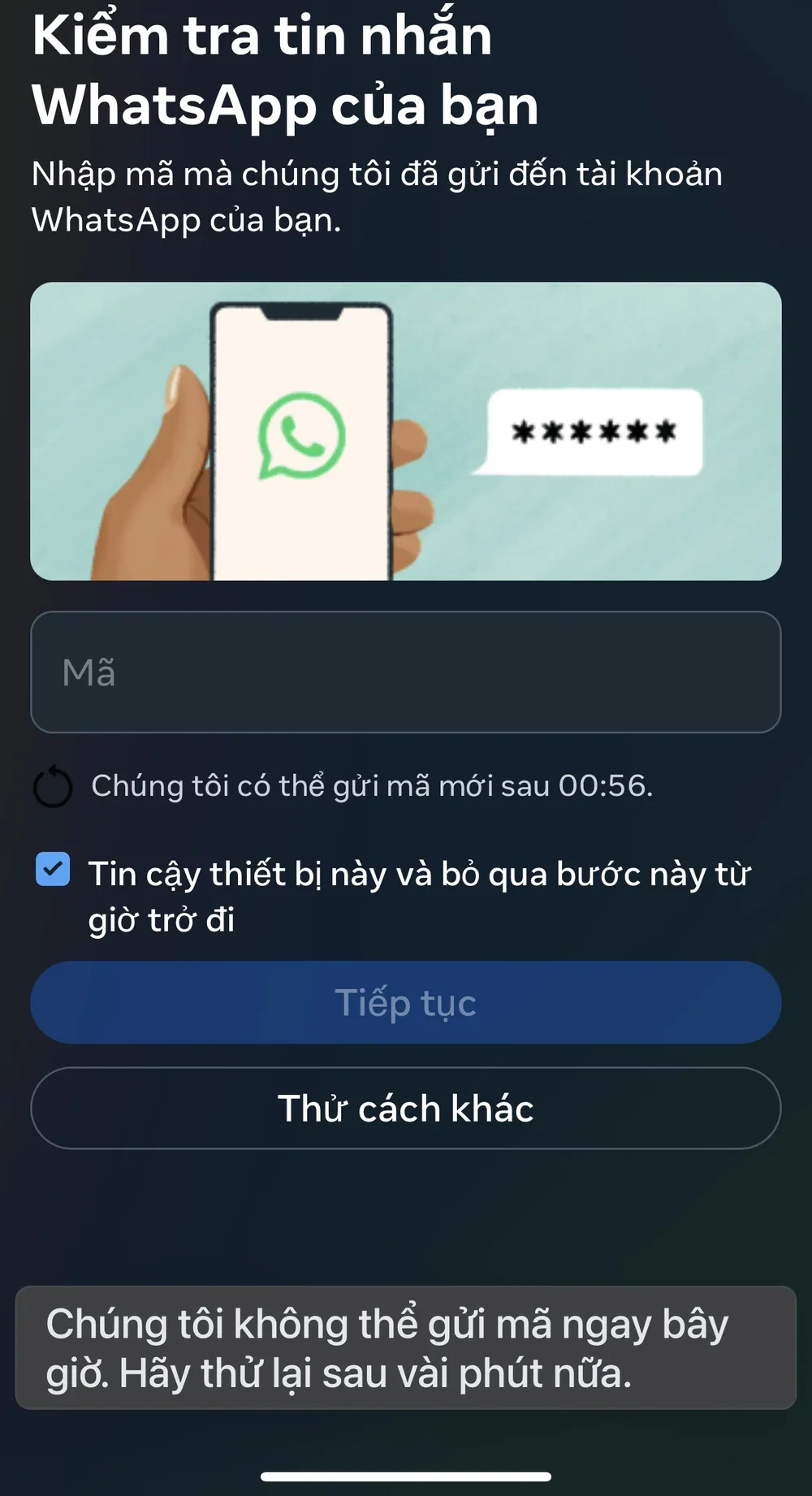 Người dùng Việt Nam vẫn đang gặp trục trặc trong việc chờ Facebook gửi lại mã xác minh theo số điện thoại đã đăng ký