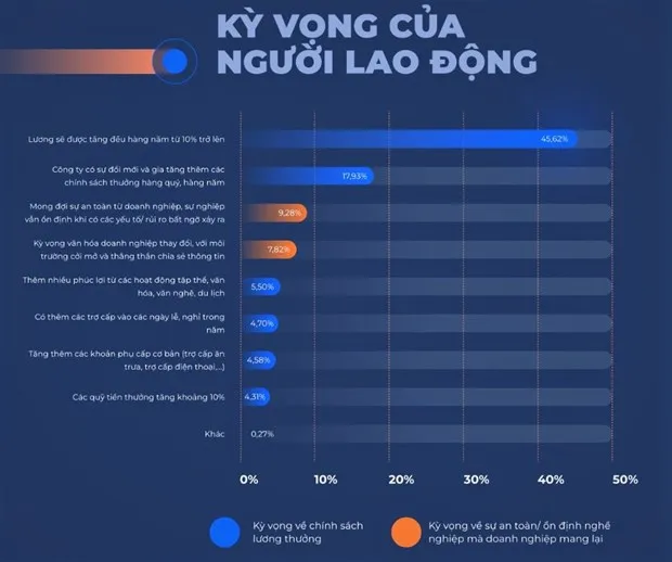 Bên cạnh các kỳ vọng về lương, thưởng và phúc lợi, người lao động cũng đặt thêm nhiều kỳ vọng khác vào doanh nghiệp như "mong đợi sự an toàn từ doanh nghiệp, sự nghiệp vẫn ổn định khi có các yếu tố rủi ro bất ngờ xảy ra" và "kỳ vọng văn hóa doanh nghiệp thay đổi, với môi trường cởi mở và thẳng thắn chia sẻ thông tin."