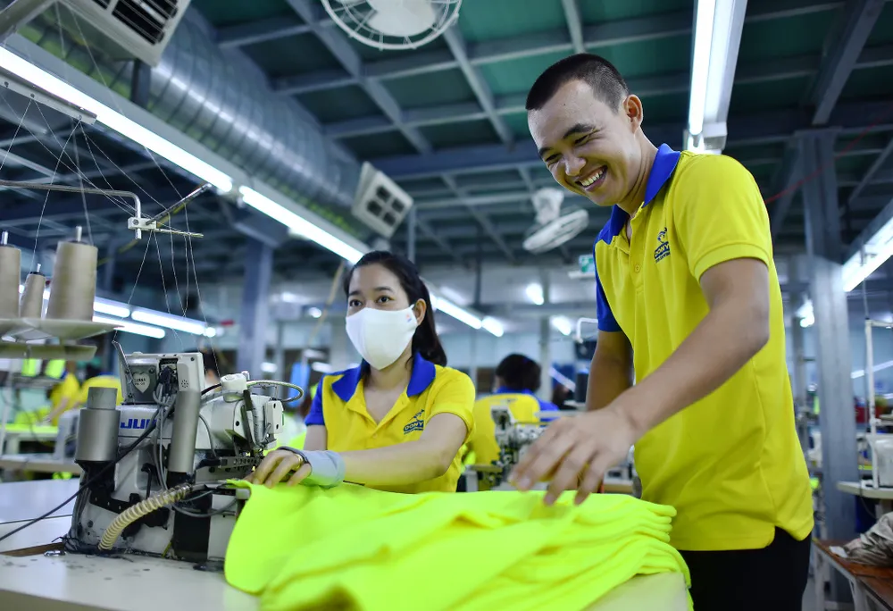 Công nhân Công ty TNHH May mặc Dony, huyện Bình Chánh, TPHCM kiểm tra sản phẩm. Ảnh: NGÔ BÌNH