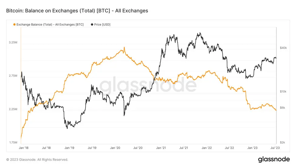 Số dư Bitcoin trên biểu đồ các sàn giao dịch | Nguồn: Glassnode