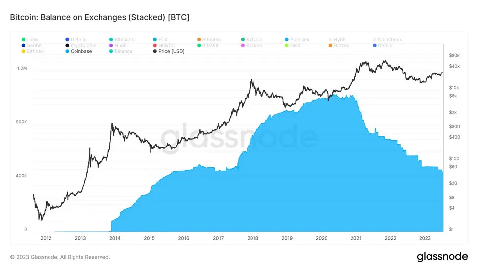Số dư Bitcoin trên biểu đồ sàn giao dịch | Nguồn: Glassnode