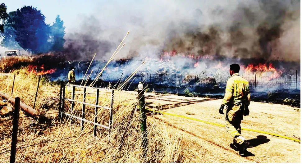 Lực lượng cứu hỏa Israel nỗ lực kiểm soát đám cháy sau vụ tấn công bằng rocket từ phía Lebanon. Ảnh: REUTERS