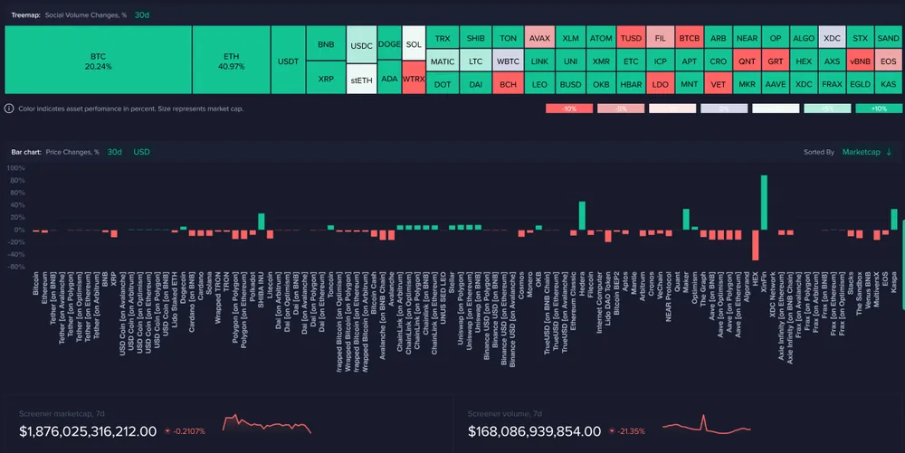 Tại thời điểm viết bài, giá Bitcoin đã quay trở lại dưới mốc 30.000 USD và hầu hết các dự án vốn hóa thị trường lớn đều đang giảm dần. Thật thú vị, các meme coin như PEPE, SHIB và BITCOIN nổi bật như những trường hợp ngoại lệ và mang lại lợi nhuận cho hodler trong khung thời gian 30 ngày.