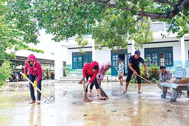 Đáng ra hôm nay chính là ngày Trường Chính trị tỉnh Khánh Hòa kỷ niệm 70 năm thành lập trường. Khi các chương trình đã đâu vào đó thì mưa lũ ập đến. Trường Chính trị tỉnh Khánh Hòa nằm ở xa trung tâm, lại chính là nơi hứng chịu mưu lũ nhiều nhất tại TP Nha Trang vừa qua. Khi mưa ngớt, trường chính trị ngập trong bùn đất, các thầy cô giáo từ hiệu trưởng đến giáo viên, nhân viên của trường từ mấy ngày qua đầu tắt mặt tối lo dọn dẹp.