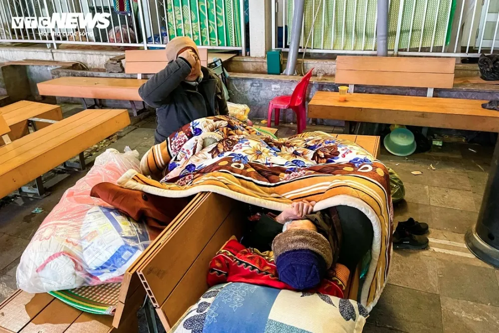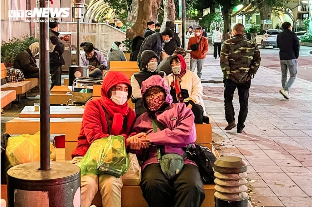 Những đứa trẻ được người lớn đưa theo bán hàng dưới trời lạnh buốt. Thời tiết lạnh giá, nhiều người lao động trong đêm đốt thêm lửa để giữ ấm cơ thể. Tại Bệnh viện Bạch Mai, nhiều người nhà bệnh nhân trong khu vực Trung tâm Cấp cứu và Đột qụy nằm co ro dưới nền nhà, ghế đá hay quanh các lối đi của bệnh viện để trông người nhà. Tại đây, các bệnh nhân ở Trung tâm Cấp cứu được điều trị, theo dõi đặc biệt nên người nhà phải túc trực 24/24 ở bên ngoài. Chỗ ngủ tạm nằm giữa hai khối nhà, gió thổi hun hút khiến cái rét càng trở nên tê tái. Những người này hầu hết đều đến từ các tỉnh, có người nhà bị nặng nên phải trực thông tin tại đây.