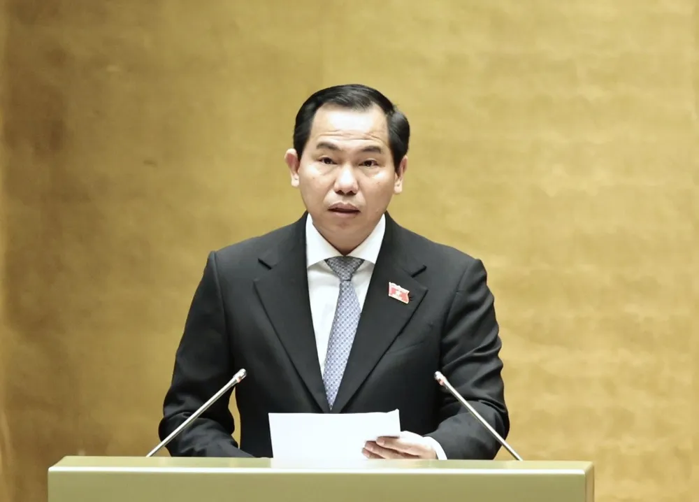 Chủ nhiệm Ủy ban Tài chính, Ngân sách của Quốc hội, Phó Trưởng Đoàn Thường trực đoàn giám sát của Quốc hội Lê Quang Mạnh trình bày báo cáo. Ảnh: VIẾT CHUNG