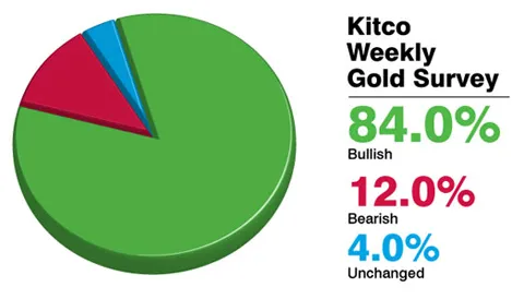 Cuộc khảo sát thường lệ của Kitco đã cho thấy, trong số 25 người tham gia, có tới 21 bỏ phiếu giá lên (chiếm 84%), trong khi 3 người thấy giá xuống (chiếm 12%) và chỉ 1 người cho rằng giá vẫn đứng yên (4%). (Xem biểu đồ dưới). Tham gia cuộc khảo sát là đại diện của các đại lý vàng, ngân hàng đầu tư, thương nhân tương lai và các nhà phân tích biểu đồ kỹ thuật.