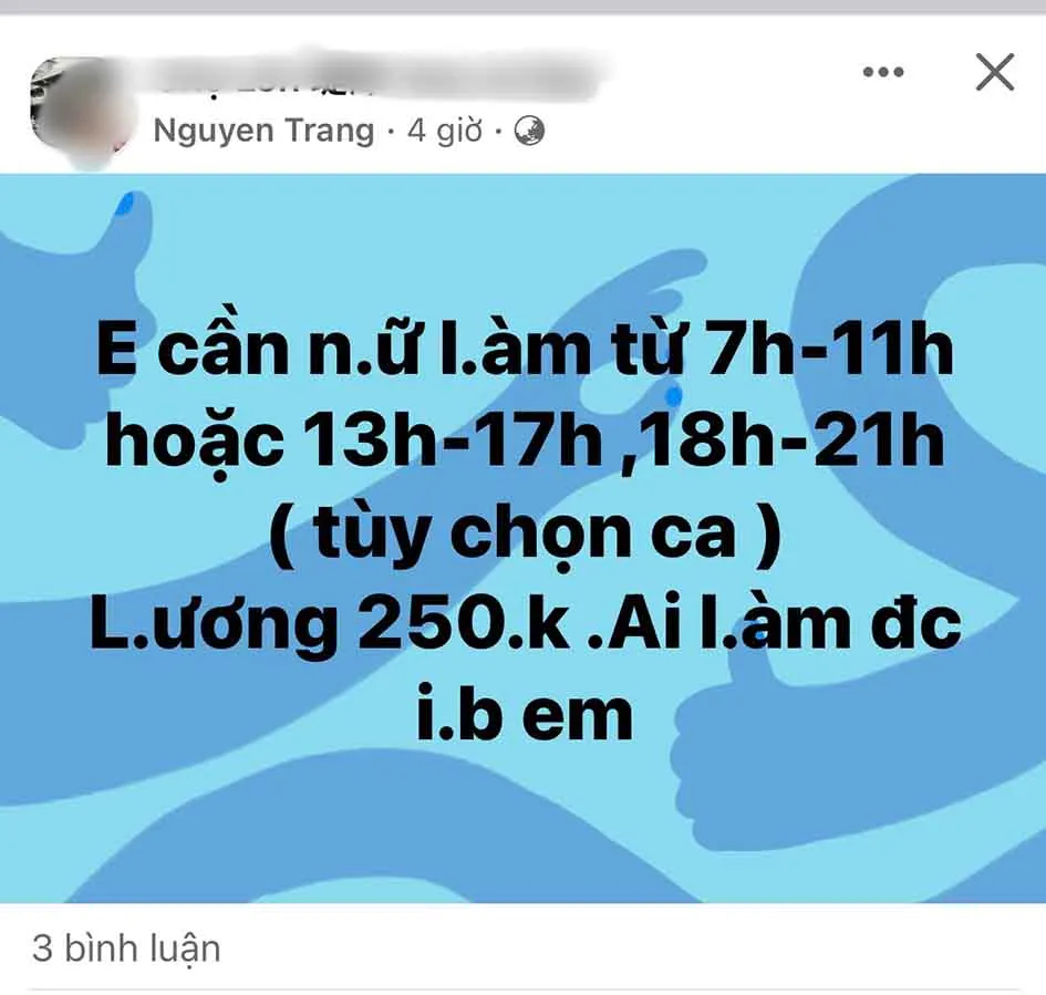 Mùa hè được ví là mùa làm thêm của nhiều bạn trẻ ở TPHCM. Trong xu thế phát triển của mạng xã hội, bên tuyển dụng hay ứng viên chỉ cần đăng tin trên các nền tảng trực tuyến sẽ dễ dàng tìm người, tìm việc. Bên cạnh những bài viết tuyển dụng rõ ràng và chi tiết thông tin việc làm, kiểu tuyển dụng “bí ẩn” với nội dung: “Cần người làm theo khung giờ…, ai quan tâm inbox (nhắn tin - PV)”, khiến nhiều người rơi vào “bẫy ngọt” lương cao.