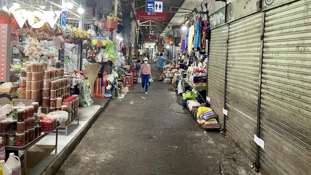 Tuy nhiên, đến tháng 7/2023, mức thu này vẫn áp dụng, nhiều quầy sạp phí tăng gấp 2-3 lần. Buôn bán ế ẩm khiến tiểu thương 'gồng gánh' chi phí không nổi và có ý định bỏ chợ