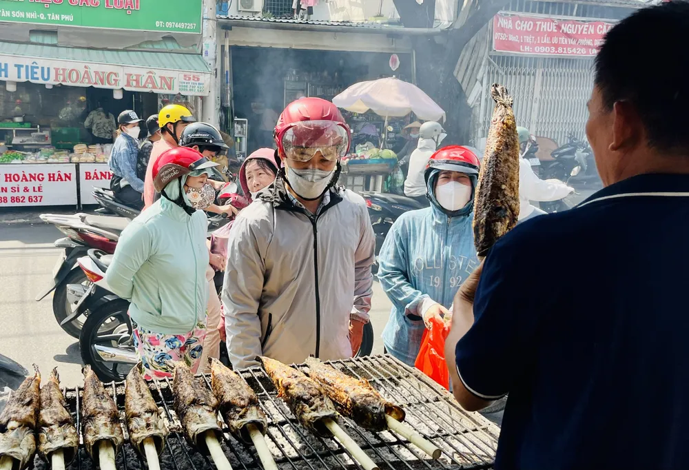 Người tiêu dùng chọn mua cá lóc nướng trưa 31-1 trên đường Tân Kỳ - Tân Quý