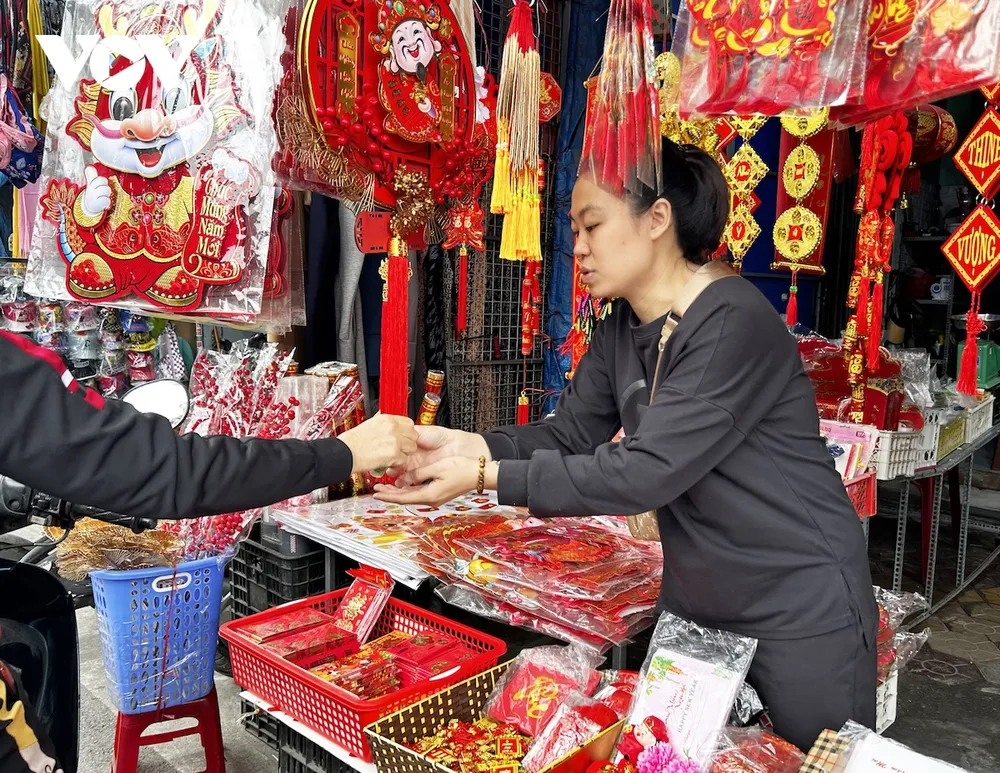 Chị Vũ Bích Ngọc, chủ một cửa hàng trên phố Phan Bội Châu cho biết: Từ sau dịp Giáng sinh, các tiểu thương đã nhanh chóng trưng bày sản phẩm trang trí Tết để phục vụ nhu cầu của khách hàng. Càng những ngày cận Tết, sức mua của người tiêu dùng càng cao nên lượng hàng chuẩn bị tăng khoảng 25-30% so với ngày thường.