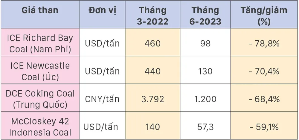 Hai quốc gia này có xu hướng ưa chuộng than cao cấp của Australia, và giá của loại than này cũng đang giảm. Chỉ số Newcastle hàng tuần cho than 6.000 kcal/kg đã giảm xuống mức thấp nhất trong 22 tháng, là 146,78 USD/tấn trong tuần tính đến ngày 26-5, giảm 67% so với mức cao kỷ lục 442,9 USD đạt được vào tháng 9-2022.