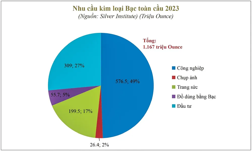 Với tổng tỷ trọng của nhu cầu đầu tư và nhu cầu trang sức chiếm trung bình 40% trong tổng nhu cầu qua các năm, có thể thấy giá bạc khó tăng trong thời gian trung hạn sắp tới. Mặc dù niềm hy vọng có thể đến từ nhu cầu bạc đối với sản xuất công nghiệp (chiếm tỷ trọng gần 50% tổng nhu cầu) với mức tăng trưởng dẫn đầu đến từ lĩnh vực quang điện.