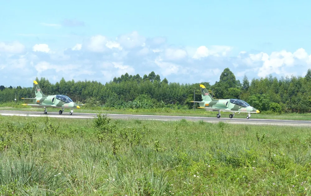2 máy bay L-39NG trong đội bay 4 chiếc trên đường băng chuẩn bị cất cánh
