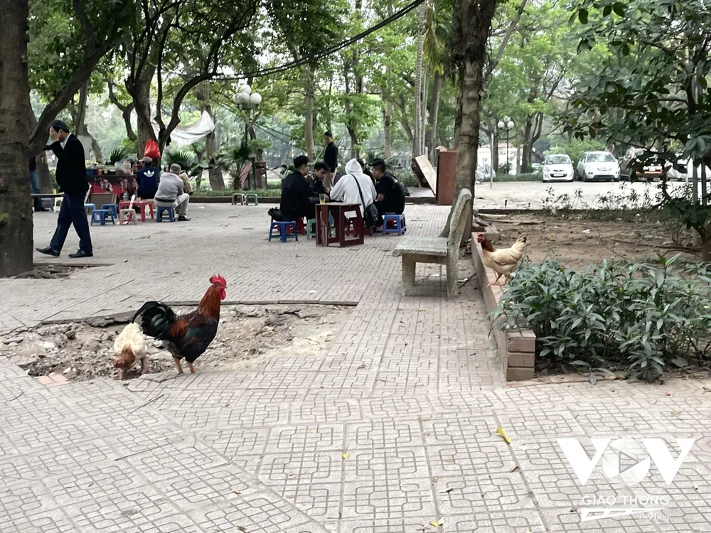 Nhiều người tận dụng phần đất trống trong công viên để nuôi gà
