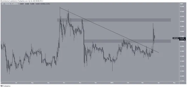 Giá XRP đã bứt phá lên trên đường kháng cự giảm dần vào ngày 21-3. Giá XRP đạt mức cao hàng năm mới là 0,493 USD trước khi giảm. Sau đó, giá đã xác nhận vùng 0,430 USD là hỗ trợ trước khi bật lên.