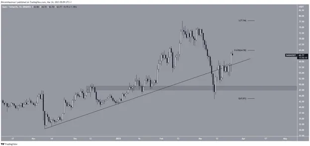 Giá Dash (DASH) đã bật lên từ vùng hỗ trợ 48 USD vào ngày 14-3, bắt đầu xu hướng tăng hiện tại. Nó đã lấy lại đường hỗ trợ tăng dần vào ngày 23-3.