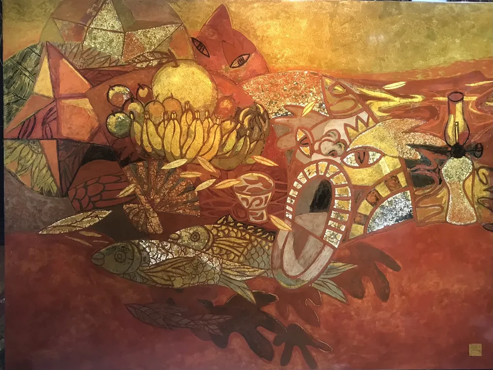 Đây là các tranh anh vẽ trong những ngày phong tỏa của đại dịch. Màu sắc, đường nét, hình mảng cùng vàng son chắp cánh cho những bay bổng vượt qua những gò bó trói buộc của những khó khăn thường nhật.