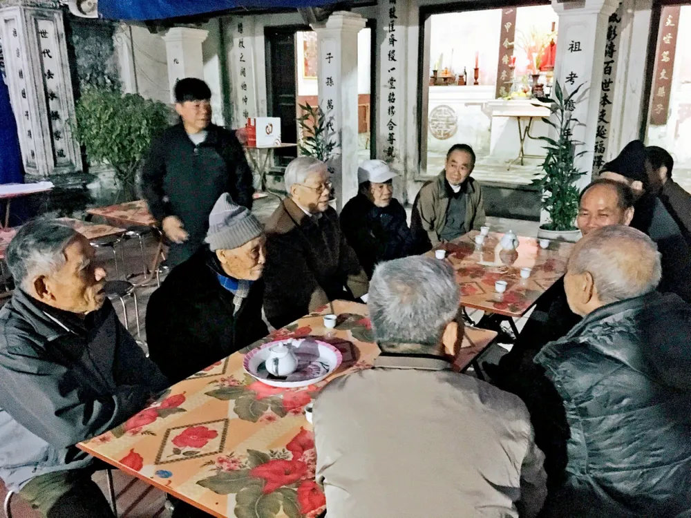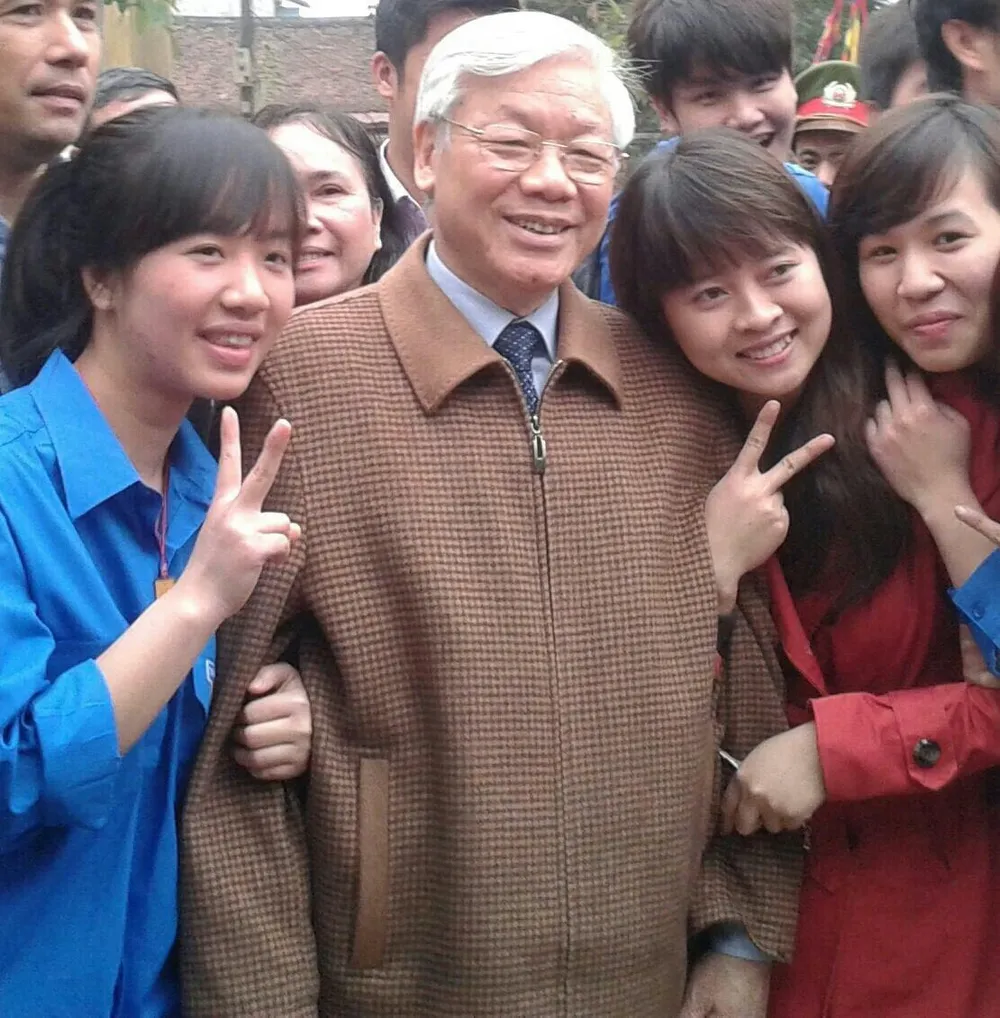 Tổng Bí thư Nguyễn Phú Trọng với các bậc cao niên trong làng