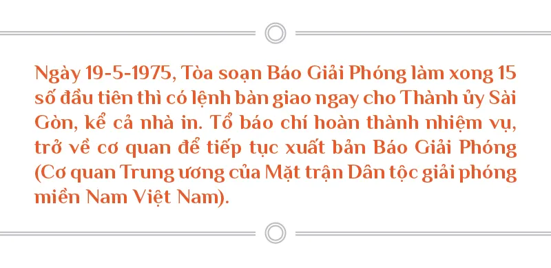 Sau chiến thắng Buôn Ma Thuột (10-3-1975) không lâu, cấp trên triệu hồi những phóng viên Báo Giải Phóng đi công tác xa về nhận nhiệm vụ mới: Chuẩn bị ra báo tại Sài Gòn! Khi về đến Tòa soạn, thủ trưởng Nguyễn Huy Khánh - Hai Khuynh cho chúng tôi xem Đề án công tác của bộ phận trọng điểm Ban Tuyên huấn Trung ương Cục.