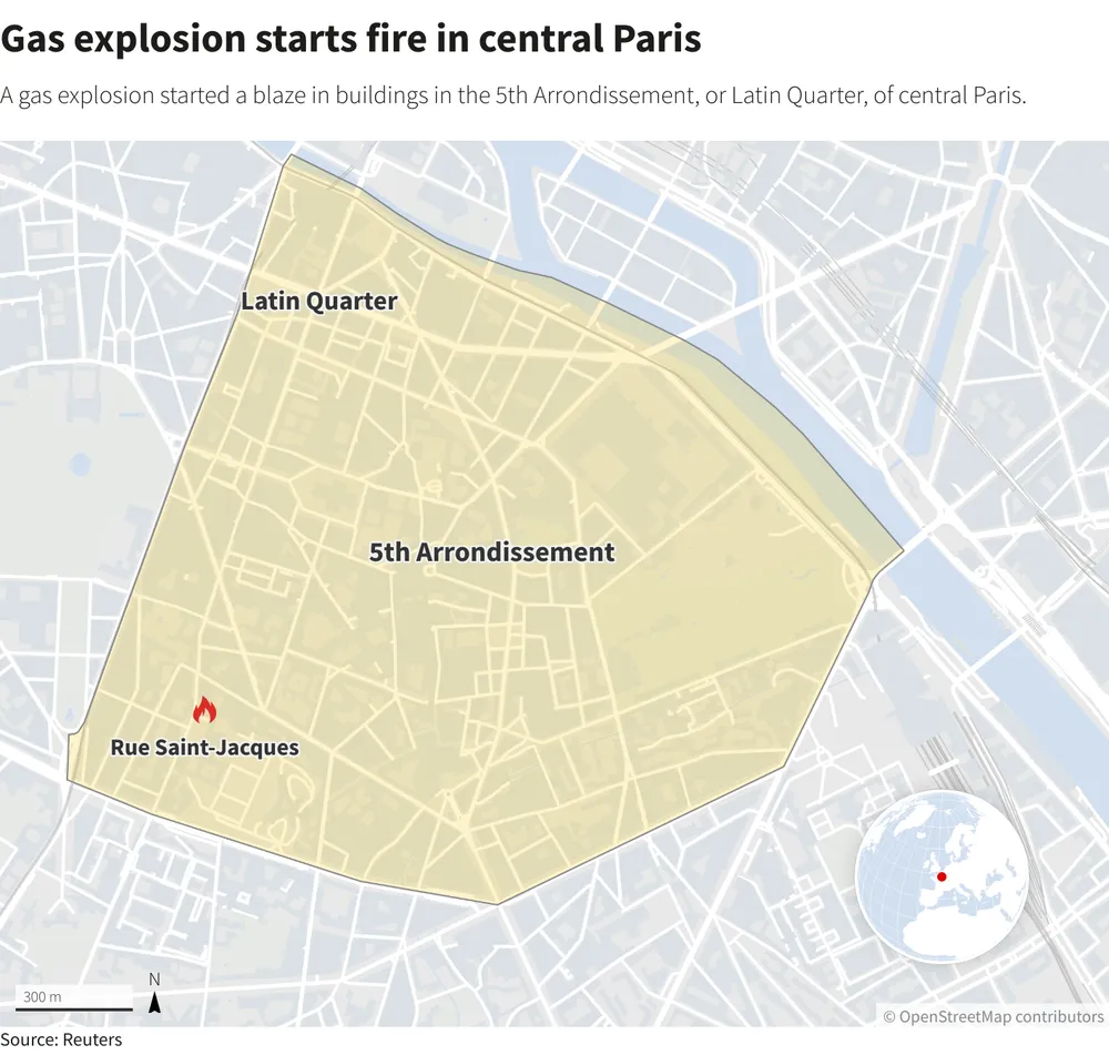 Lính cứu hỏa khắc phục sự cố tại hiện trường vụ nổ được cho là do khí gas ở Paris, Pháp, ngày 21-6-2023. Nguồn: TTXVN Ảnh: TTXVN