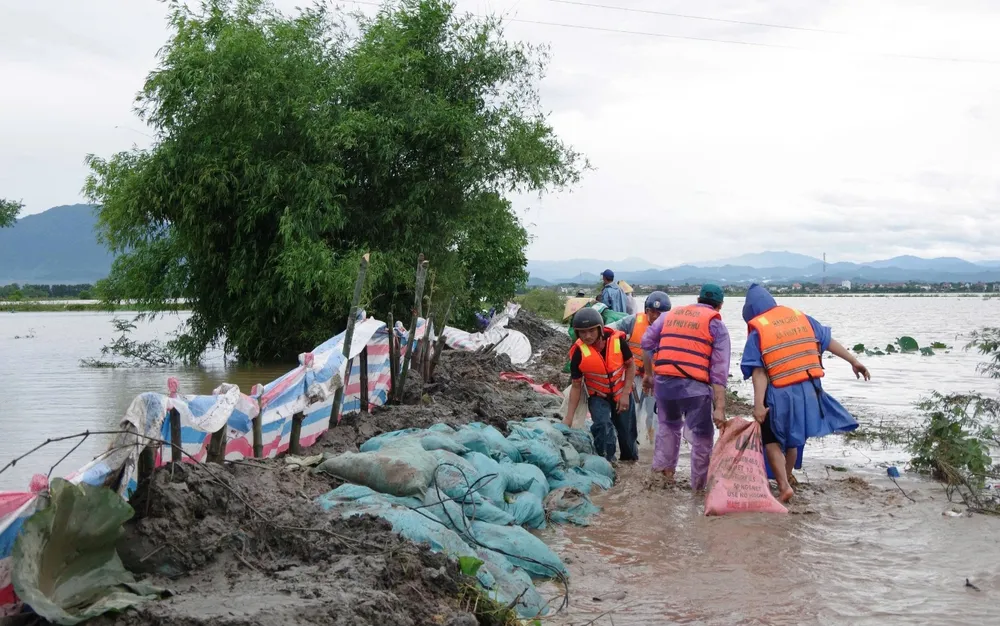 Chiều 13-6, Thượng tá Hồ Đắc Quốc và Đại tá Bùi Đình Quyền, Phó Chỉ huy trưởng Bộ Chỉ huy quân sự (CHQS) TP Huế cho biết, sáng cùng ngày, mưa lớn và nước dâng cao làm đê nội đồng tại xã Thủy Phù, thị xã Hương Thủy bị vỡ một đoạn dài hơn 20m, ảnh hưởng nghiêm trọng đến hàng trăm hecta lúa của nhân dân.