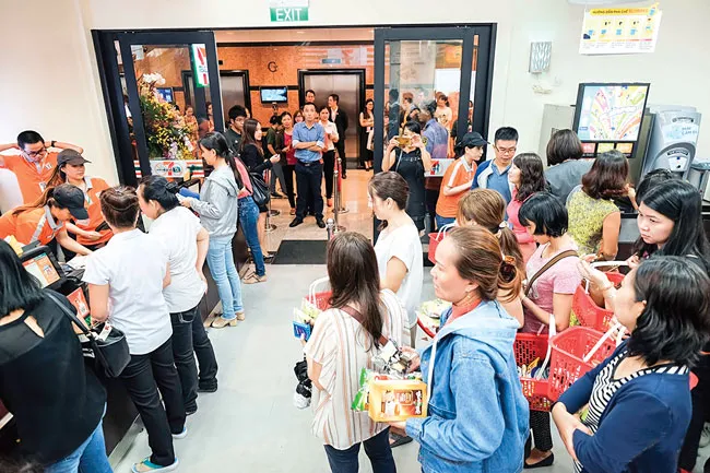 Khách hàng xếp hàng mua đồ ăn tại của hàng 7-Eleven. Thái: Đẩy mạnh chiếm lĩnh trọn gói