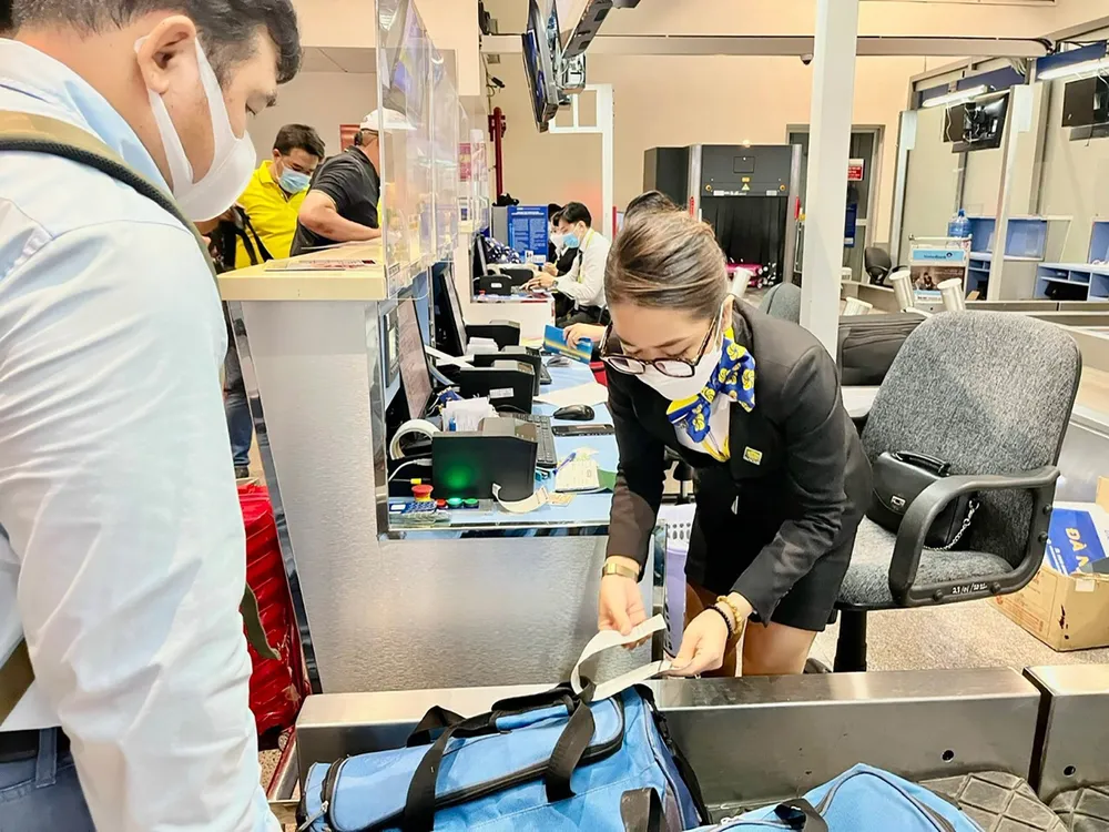Hành khách làm thủ tục lên máy bay tại sân bay Tân Sơn Nhất