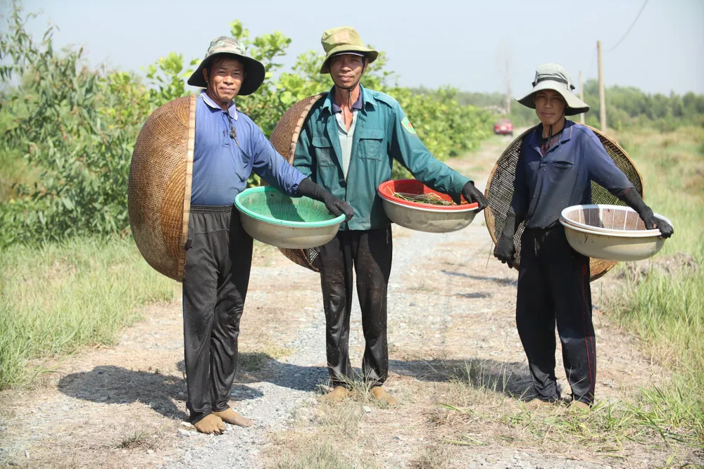 Đã quá trưa, cả nhóm dặm cá gom lại và cột chặt thau rổ lên xe chạy về điểm thu gom cá của bà Đoàn Thị Út, xã Mỹ Thạnh Đông. Đây cũng là nơi “hẹn hò” lý tưởng của người dân dặm cá lia thia vào mỗi buổi sáng trước khi ra đồng, họ ngồi với nhau nhâm nhi tách trà, chia sẻ kinh nghiệm dặm cá cũng như chuyện đồng án.