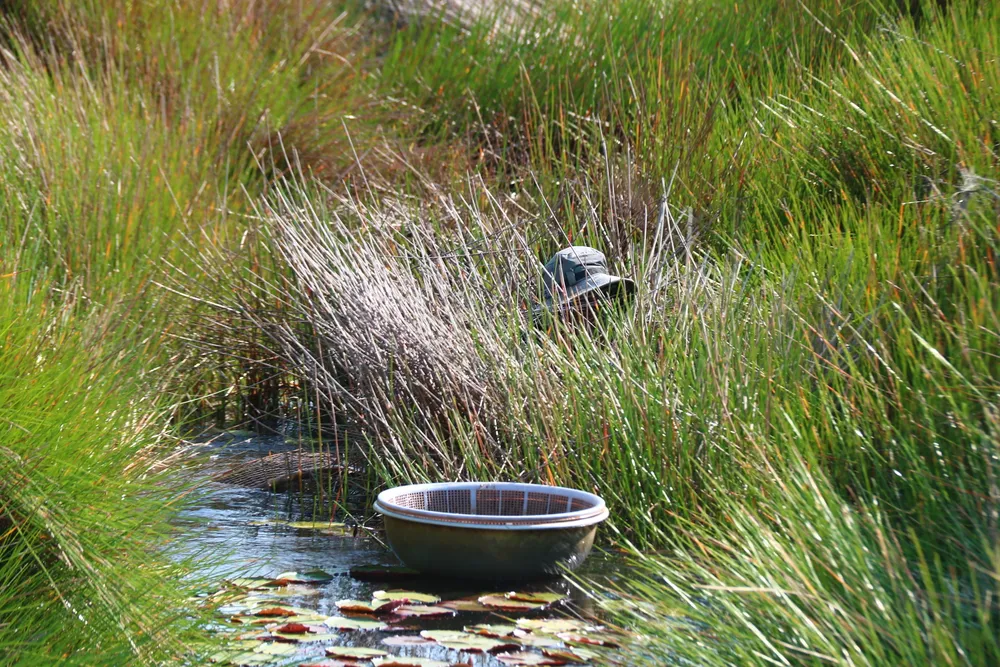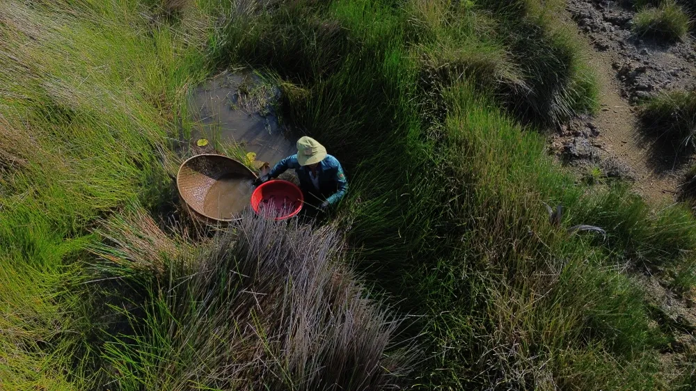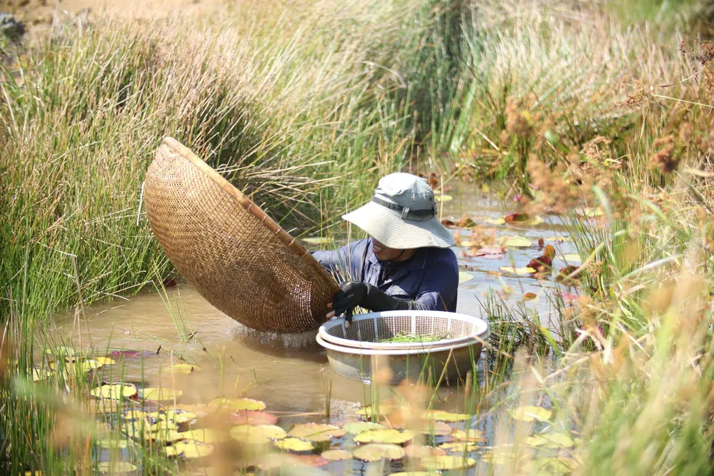 Hơn nữa, đám bọt này cũng chứng tỏ lớp bùn đáy có nhiều sinh vật phù du, là mồi ăn ưa thích của cá lia thia. Nói xong anh Mẫu lội xuống vùng nước khác tiếp tục công việc của mình.