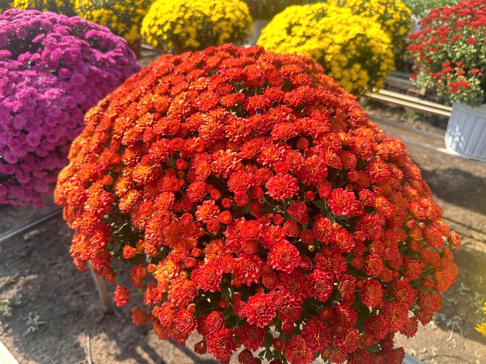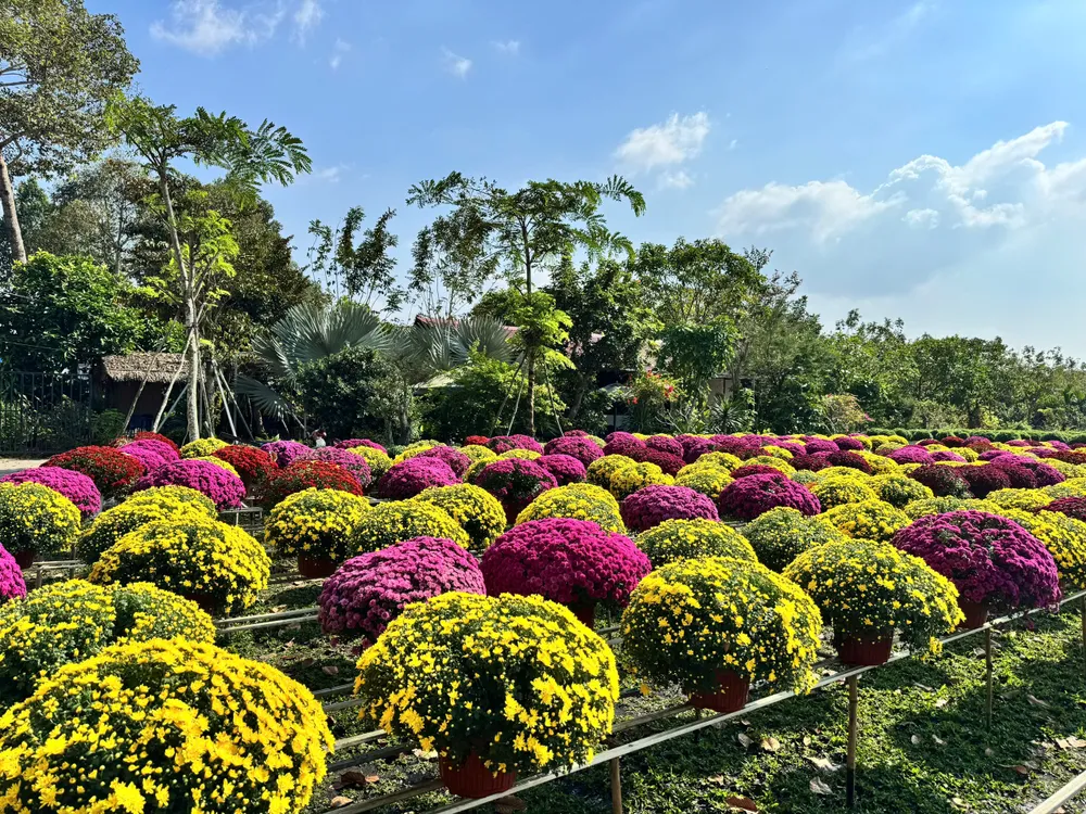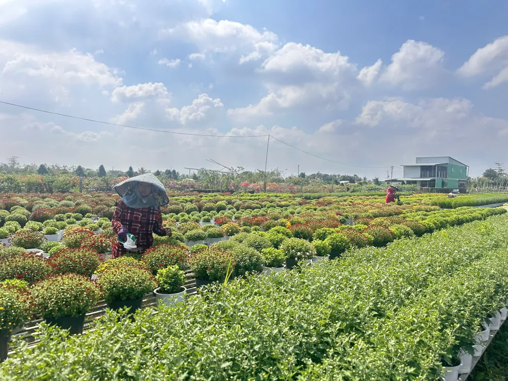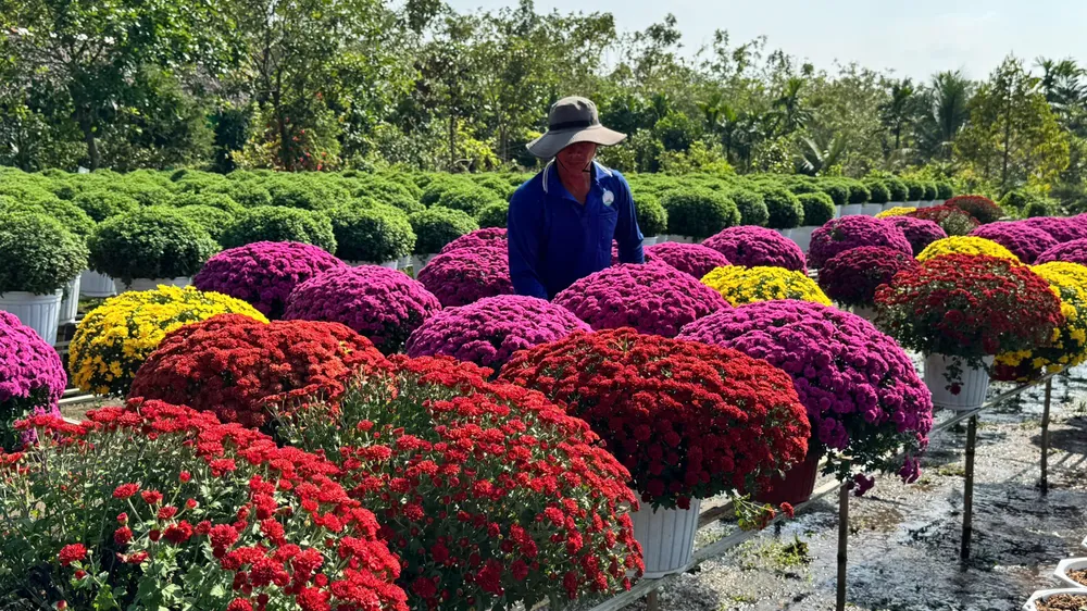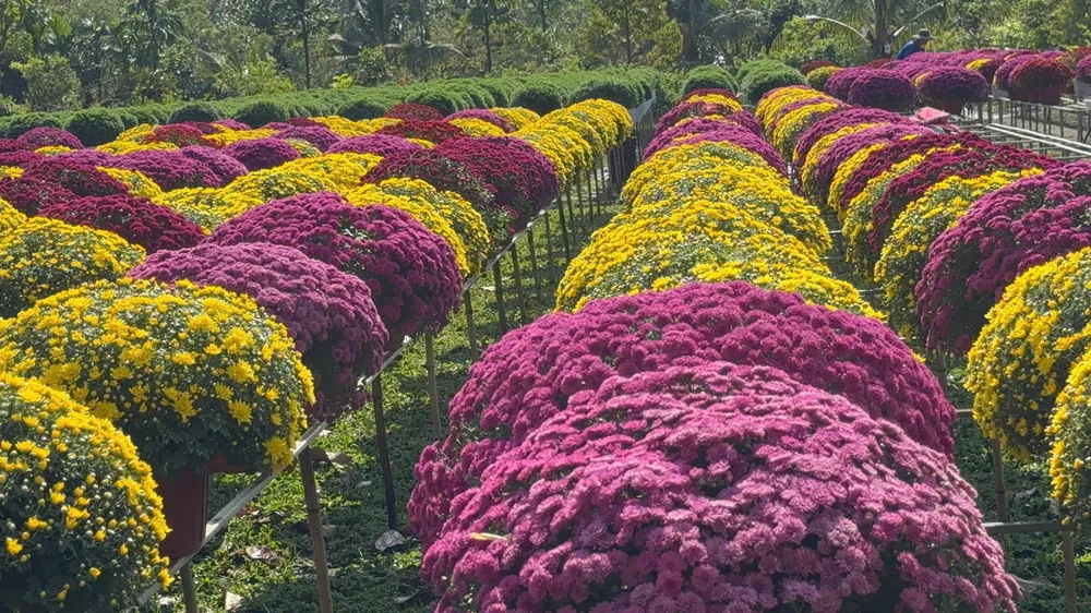 Hộ trồng hoa kiểng Trương Bé Thúy (phường Sa Đéc) đã trồng hơn 1.500 chậu hoa cúc mâm xôi nhiều màu. Đến nay những chậu cúc vàng, đỏ, tím, hồng đã lên màu tươi tắn và được đưa lên giàn để chăm sóc đợi dịp khoe sắc.