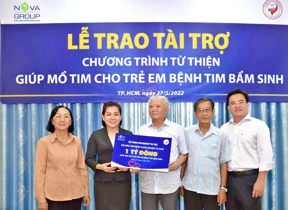 | Chương trình phẫu thuật tim cho trẻ em bị bệnh tim bẩm sinh của Hội Bảo trợ Bệnh nhân nghèo TP.HCM được chính thức khởi động từ năm 2006, đến nay đã giúp phẫu thuật cho hơn 9.500 em. Chương trình có sự chung tay góp sức của nhiều nhà tài trợ, trong đó có NovaGroup. Từ 2007 đến nay, NovaGroup đã tài trợ cho Hội hơn 16 tỷ đồng để thực hiện các chương trình như: nước sạch học đường, quà Tết cho nghệ sỹ nghèo, mổ tim cho trẻ em bị bệnh tim bẩm sinh. Riêng chương trình phẫu thuật cho trẻ bị bệnh tim bẩm sinh, Tập đoàn đã tài trợ hơn 1,8 tỷ đồng và giúp mổ tim cho 100 trẻ ở các tỉnh thành trong cả nước. |