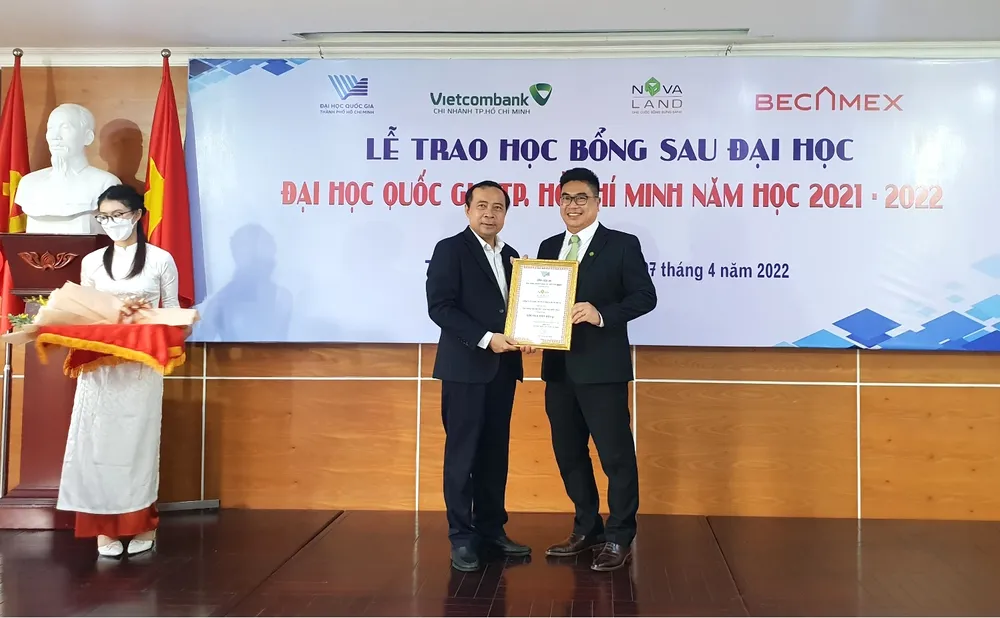 Các suất học bổng lần này được trích từ số tiền 10 tỷ đồng mà Tập đoàn Novaland đã trao tặng đến Quỹ phát triển Đại học Quốc gia TP.HCM (ĐHQG-HCM) nhằm hỗ trợ phát triển hoạt động Giáo dục - đào tạo của ĐHQG-HCM.