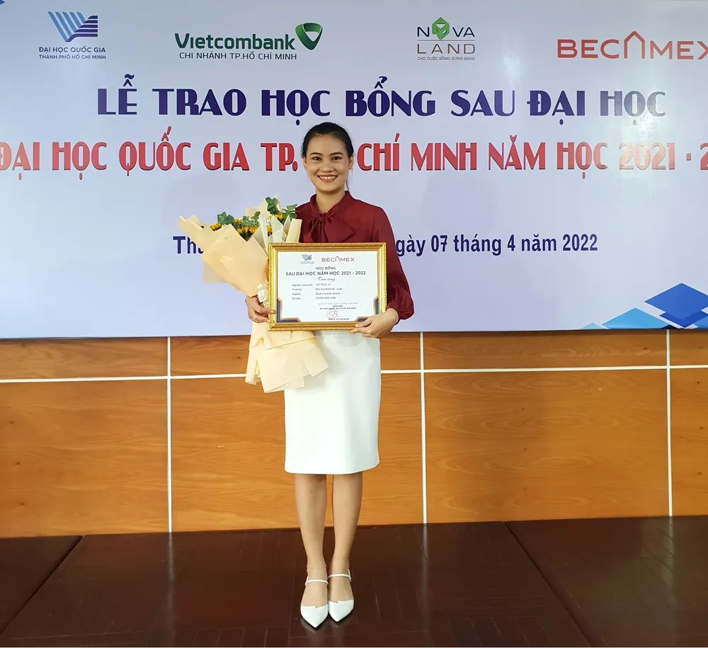 Nghiên cứu sinh Hồ Trúc Vi, Khoá 2018, ngành Quản Trị Kinh Doanh trường Đại học Kinh Tế Luật chia sẻ: “Tự hào và hạnh phúc là 2 từ mô tả chính xác nhất cảm xúc của tôi lúc này. Và tôi tin chắc rằng đây cũng là cảm xúc chung của 29 ứng viên xuất sắc còn lại đang có mặt tại đây, đứng trên bục học bổng vinh quang để ghi nhận sự nỗ lực không ngừng của bản thân. Món quà học bổng ý nghĩa này giúp tôi có được một khoản tài chính trang trải quá trình học tập và nghiên cứu khoa học của mình. Tôi sẽ đầu tư nó vào việc học ngôn ngữ, tham gia các hội thảo quốc tế, mua thêm một vài cuốn sách chuyên ngành. Tôi tin rằng, đầu tư giáo dục là đầu tư mang lại hiệu quả nhất, bởi tôi có thể khám phá nhiều hơn những kiến thức bao la của thế giới, để viết nên những công trình nghiên cứu có giá trị cho cuộc sống. Một lần nữa, để tri ân sự ủng hộ, đồng hành của Chương trình học bổng sau đại học ĐHQG TP.HCM, tôi xin đại diện cho 30 học viên nhận học bổng kính chúc ĐHQG TP.HCM, các đơn vị tài trợ, đặc biệt là Tập đoàn NOVALAND ngày càng thịnh vượng và phát triển.