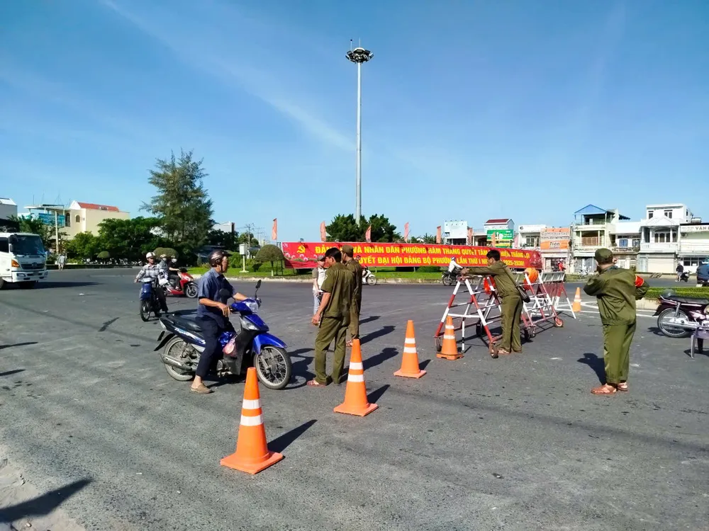 Lực lượng chức năng chốt chặn nhiều vị trí trên quốc lộ 1 qua tỉnh Lâm Đồng. Ảnh: NGUYỄN TIẾN