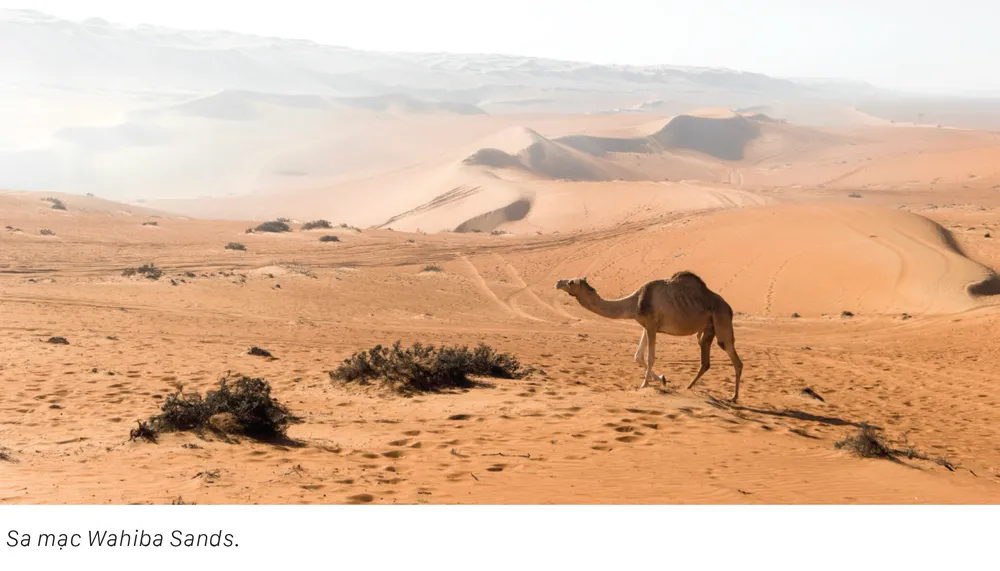 Khám phá vẻ đẹp hoang sơ của sa mạc Wahiba Sands, nằm cách Muscat khoảng 2-3 giờ lái xe. Bạn có thể tham gia vào các chuyến phiêu lưu trên xe địa hình, cưỡi lạc đà hoặc dạo bộ trên cát mịn của sa mạc. Đặc biệt, hãy tận hưởng hoàng hôn tuyệt đẹp và trải nghiệm cắm trại trên sa mạc để thấy vẻ đẹp của bầu trời đêm Oman.