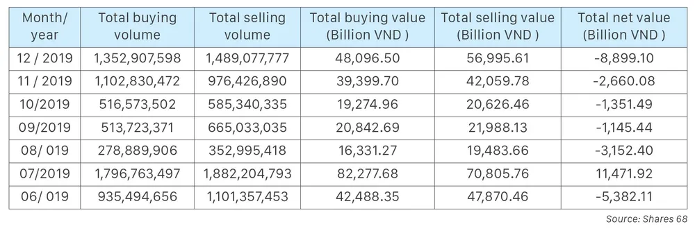 Compared to the last months of 2018, the net buying of foreign investors has not happened in the stock market in the remaining months of 2019. Foreign investors continue to be net sellers on the HSX and HNX. From 1 December to 17 December, foreign investors net sold nearly VND 9,000 bn, of which, blue-chip stocks with strong net selling were MSN, VHM, and VNM.