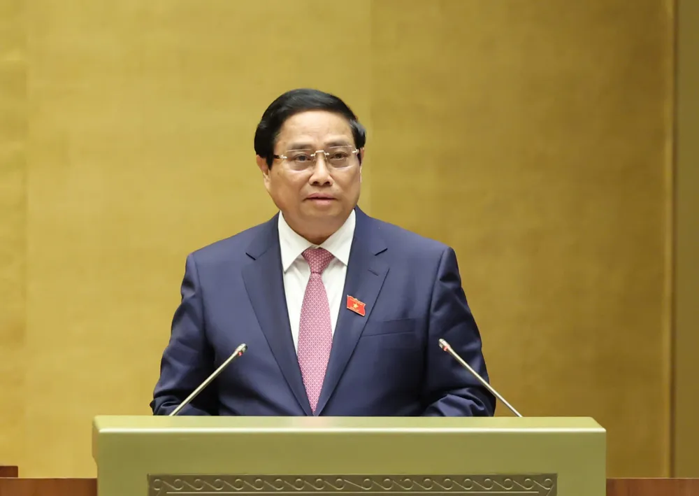 Thủ tướng Phạm Minh Chính trình bày báo cáo kết quả thực hiện kế hoạch phát triển kinh tế - xã hội năm 2024; dự kiến kế hoạch phát triển kinh tế - xã hội năm 2025. Ảnh: QUANG PHÚC