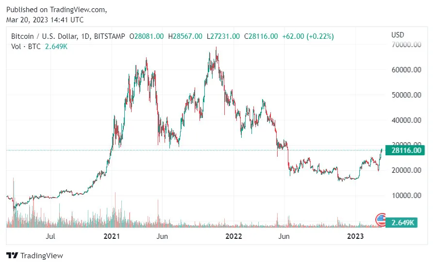 Bitcoin (BTC) bắt đầu tuần giao dịch mới trên 28.000 USD, khi thị trường phản ứng với cuộc khủng hoảng ngân hàng toàn cầu ngày càng sâu sắc.