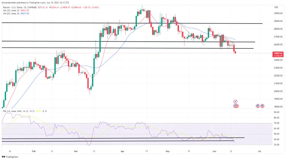 BTC/USD đã giảm xuống mức thấp nhất trong ngày là 24.820,20 USD sau tin tức này, sau mức cao 26.040,66 USD vào thứ Tư (14/6).