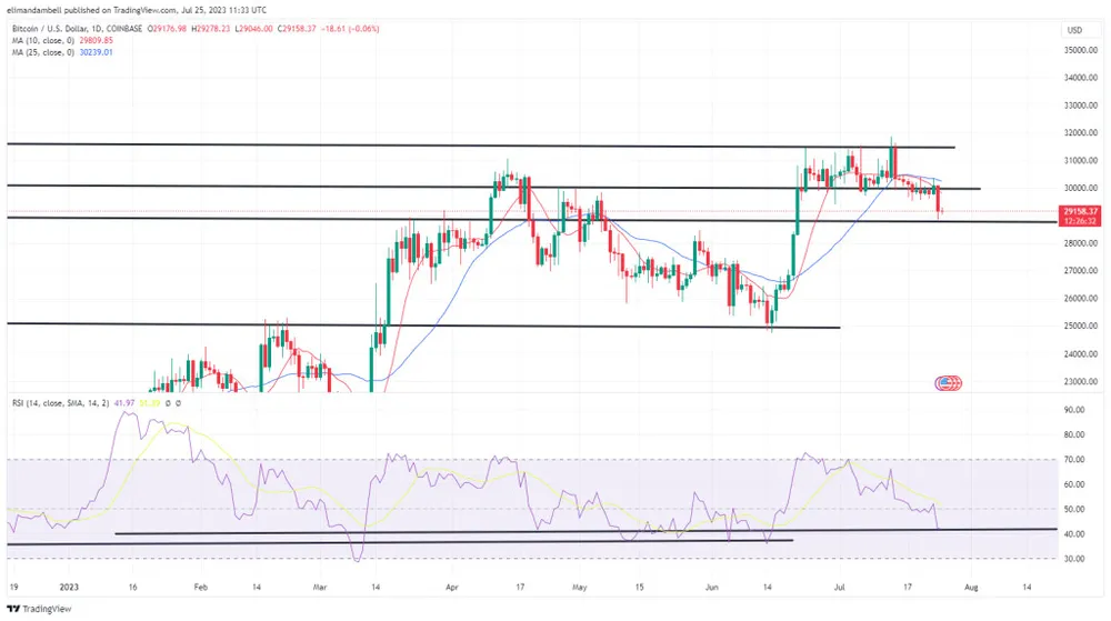 Hiện tại, có vẻ như giá sẽ vẫn ổn định một chút trên 29.000 USD, tuy nhiên điều này có thể thay đổi sau báo cáo cuộc họp của Fed.